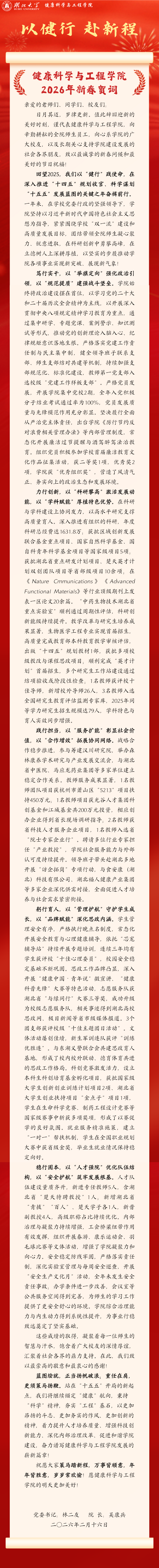 以健行,赴新程 ——2026年新春贺词