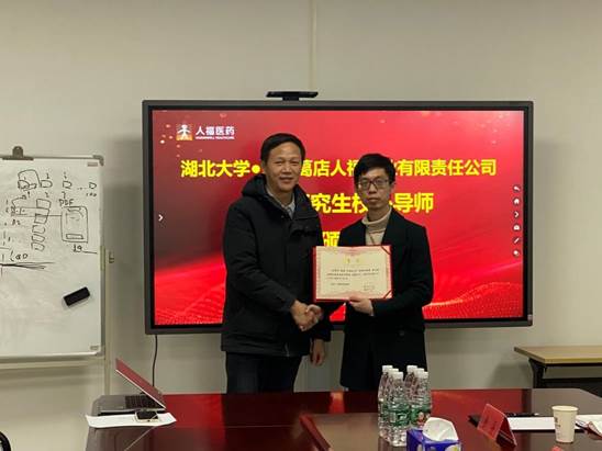 2023223日上午,yl1111永利集团刘志洪经理带队赴武汉九珑人福药业有限责任公司进行专业硕士研究生校外兼职导师聘任,湖北葛店人福药业有限责任公司总经理郑承刚、总工程师汪洋博士、研发总监刘诚博士、研发副总工刘林博士、人力资源总监余洋出席。